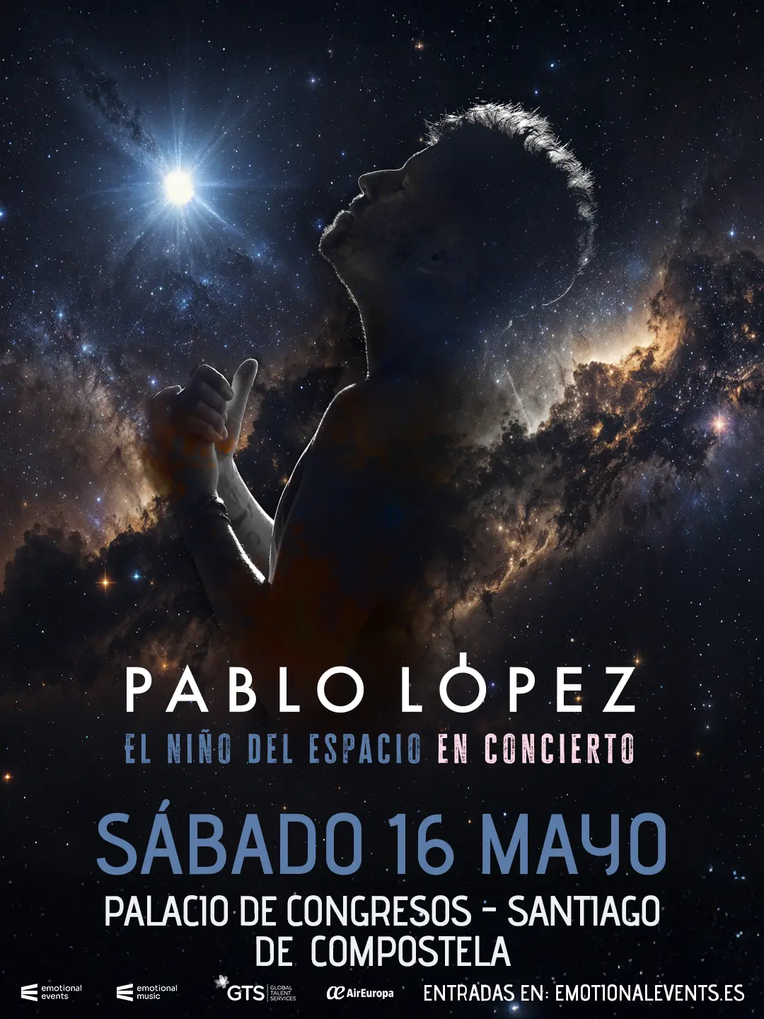 El aclamado artista Pablo López, ha sorprendido a sus fans con el anuncio de su nueva gira ‘El Niño del Espacio en Concierto 2026’, un espectáculo que promete dejar huella en todos los escenarios. Con un repertorio que incluye sus grandes éxitos y las nuevas obras de su esperado álbum, López se embarcará en una gira por los principales teatros del país, acompañado de su banda y una cuidadosa puesta en escena. La gira coincide con la salida de su nuevo single homónimo, ‘El Niño del Espacio’, y es el preludio de un año 2026 lleno de música y emociones.»